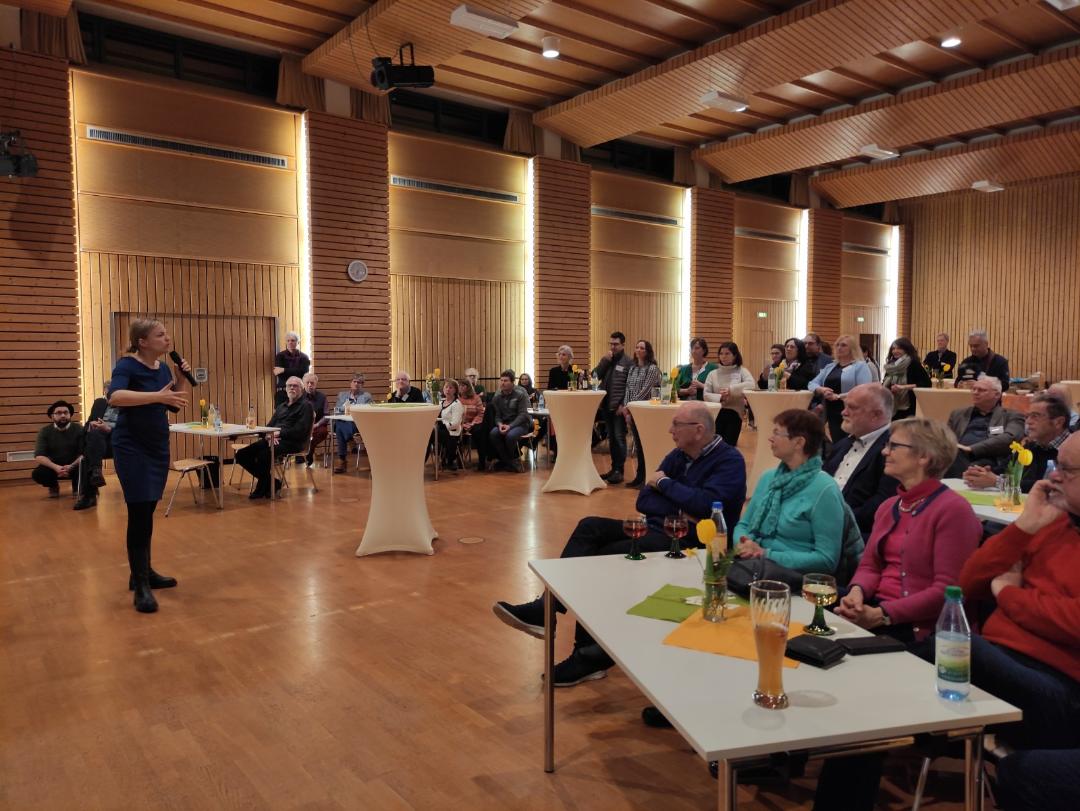 Beim gut besuchten Ascherdonnerstag im Gemeindezentrum Niederwerrn zeigt Katharina Schulze energisch die Defizite der Politik in Bayern auf, ohne unfair zu werden. Die Spitzenkandidatin für die Landtagswahl überzeugt lieber mit Inhalten und motiviert zur Mitarbeit. Sie wünsche sich eine Politik die Frauen und Männer gleichberechtigt und nicht die Care-Arbeit für Kinder und pflegebedürftige Angehörige automatisch an Frauen delegiere. Der Ausbau von erneuerbaren Energien sowie die Digitalisierung müssten schneller voran gehen. Außerdem sollte endlich für genügend Lehrkräfte gesorgt werden. Sie ist zusammen mit Ludwig Hartmann bereit Regierungsverantwortung zu übernehmen und Bayern mit „Herz und Hirn“ sowie einem Feuerwerk an Ideen weiterzuentwickeln.